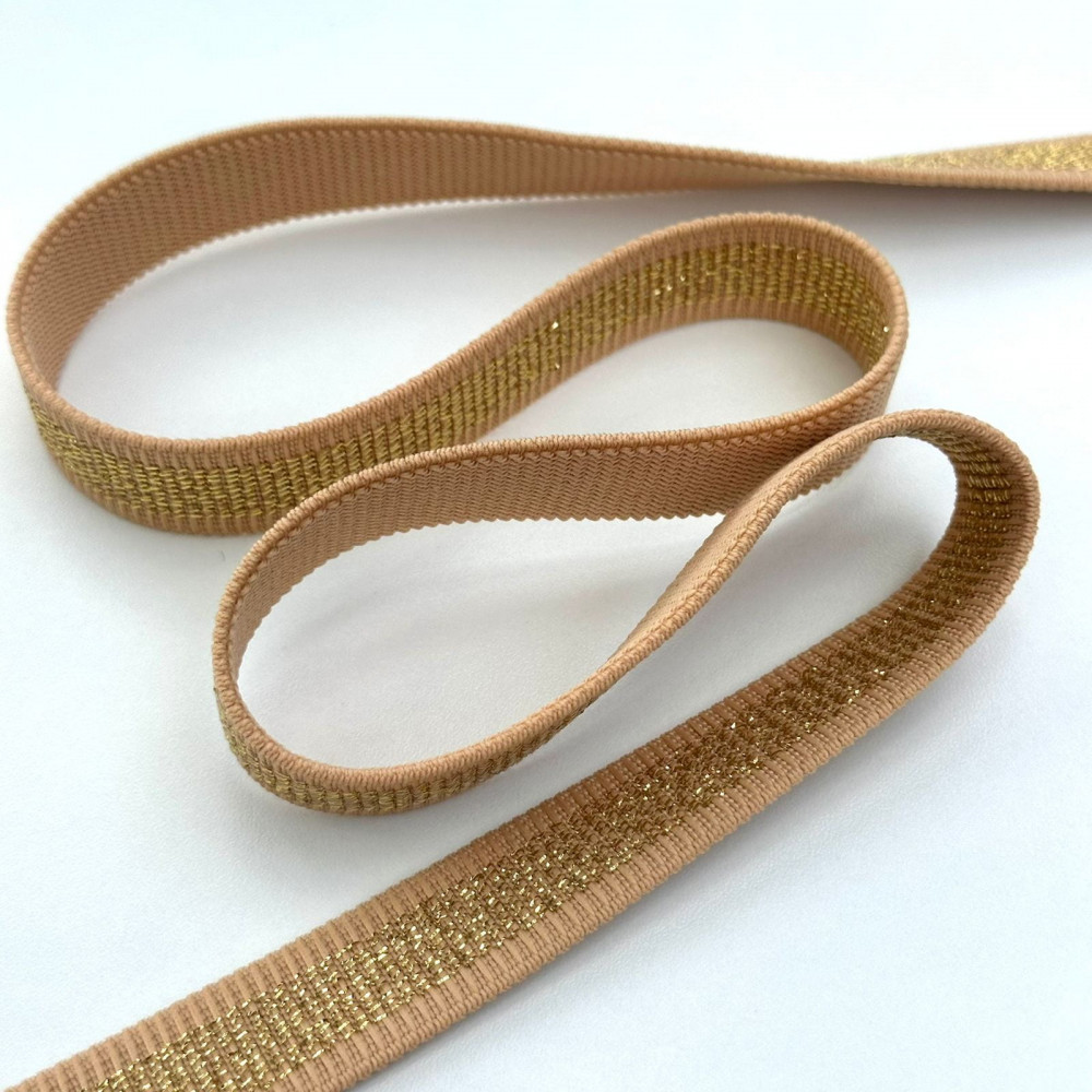Elástico Encorpado Texturizado - Nude / Lurex Dourado - 2,1cm - 745