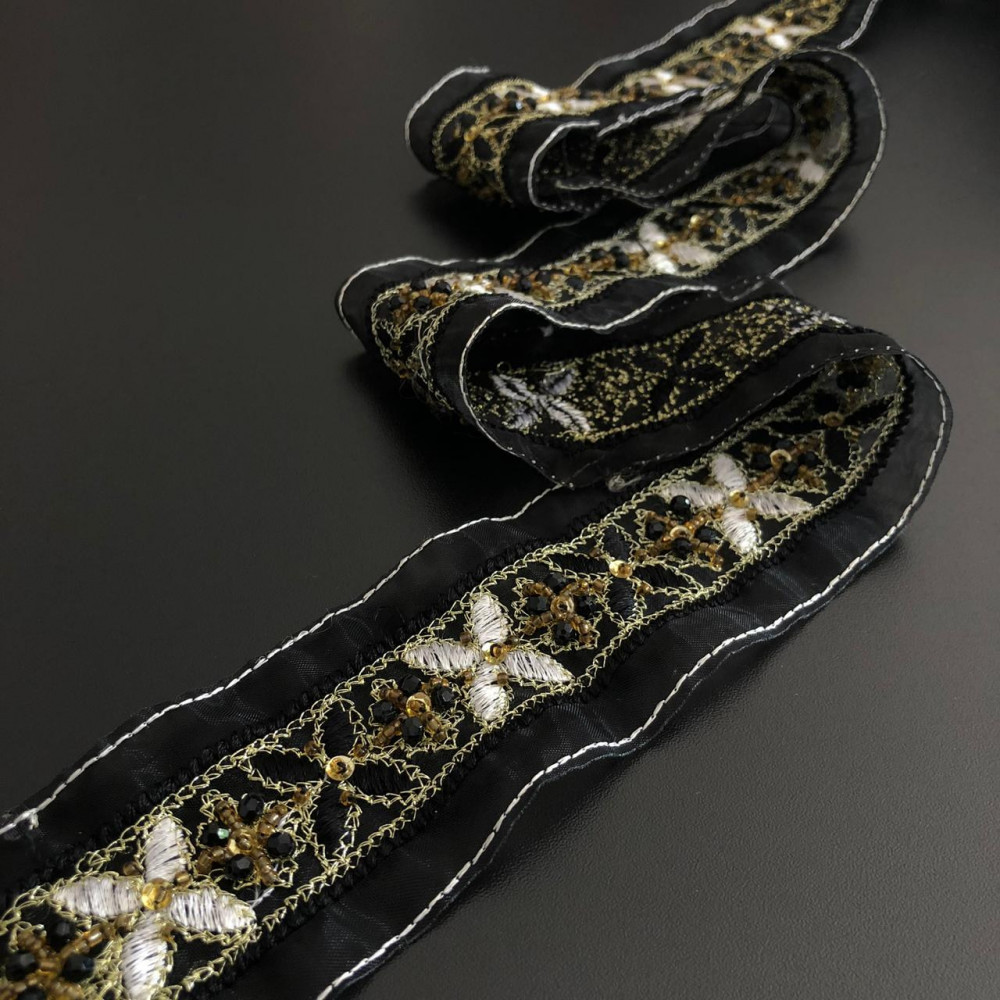 Faixa Bordada com Miçangas - 5cm - 452