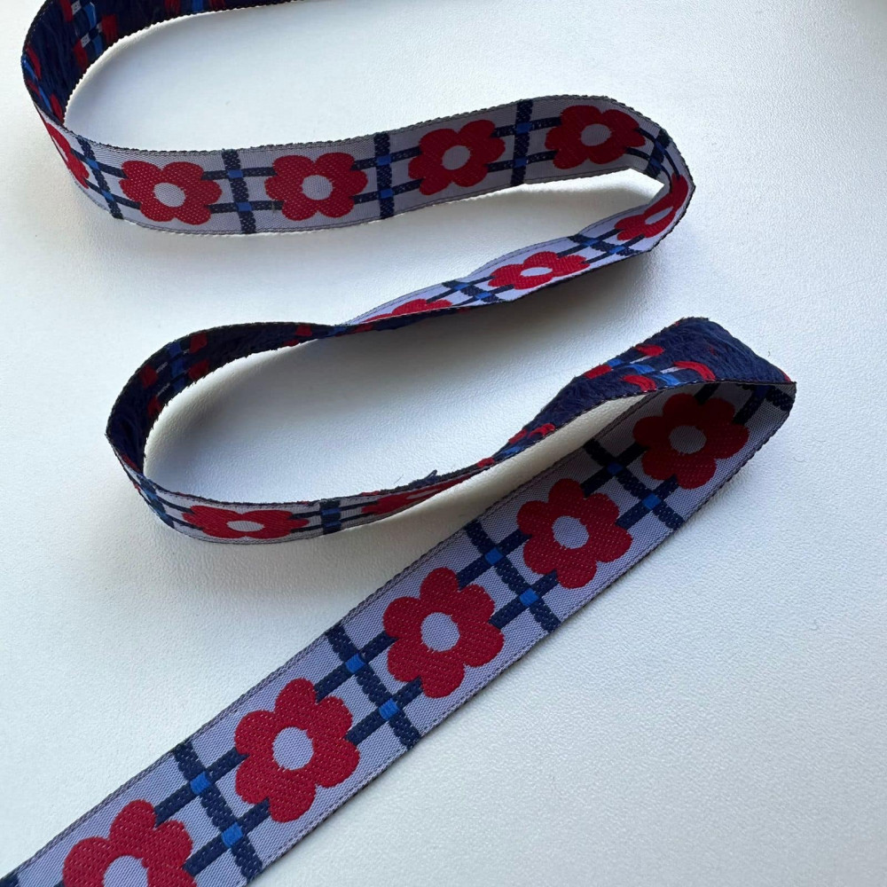 Fita Galão Bordada - Flor - Base Cinza - 1,8cm - 652