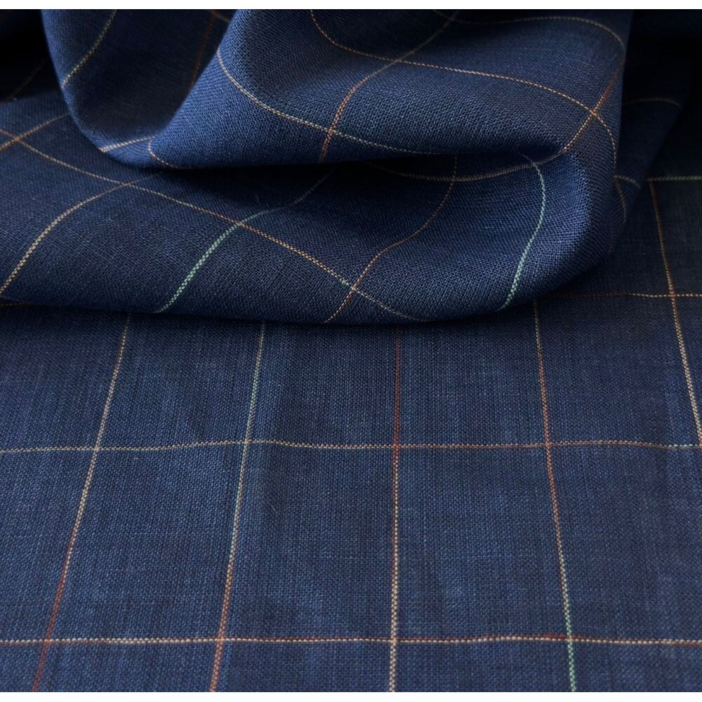 Linho Puro Grid - Marinho Fio Tinto